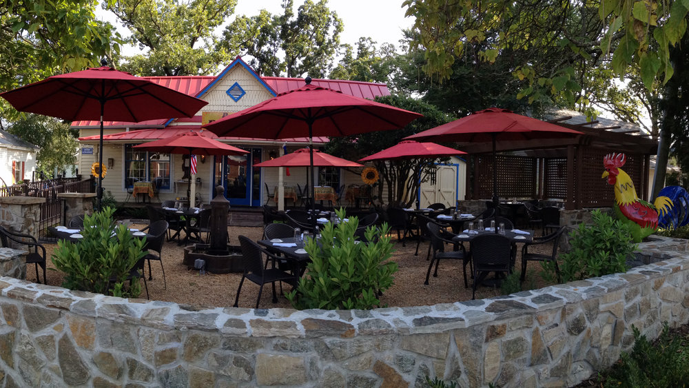 Our picturesque patio area, known locally for its vibrant red umbrellas, is shaded by towering catalpa trees and features a lovely fountain. Weather permitting, this is a beautiful outdoor venue.